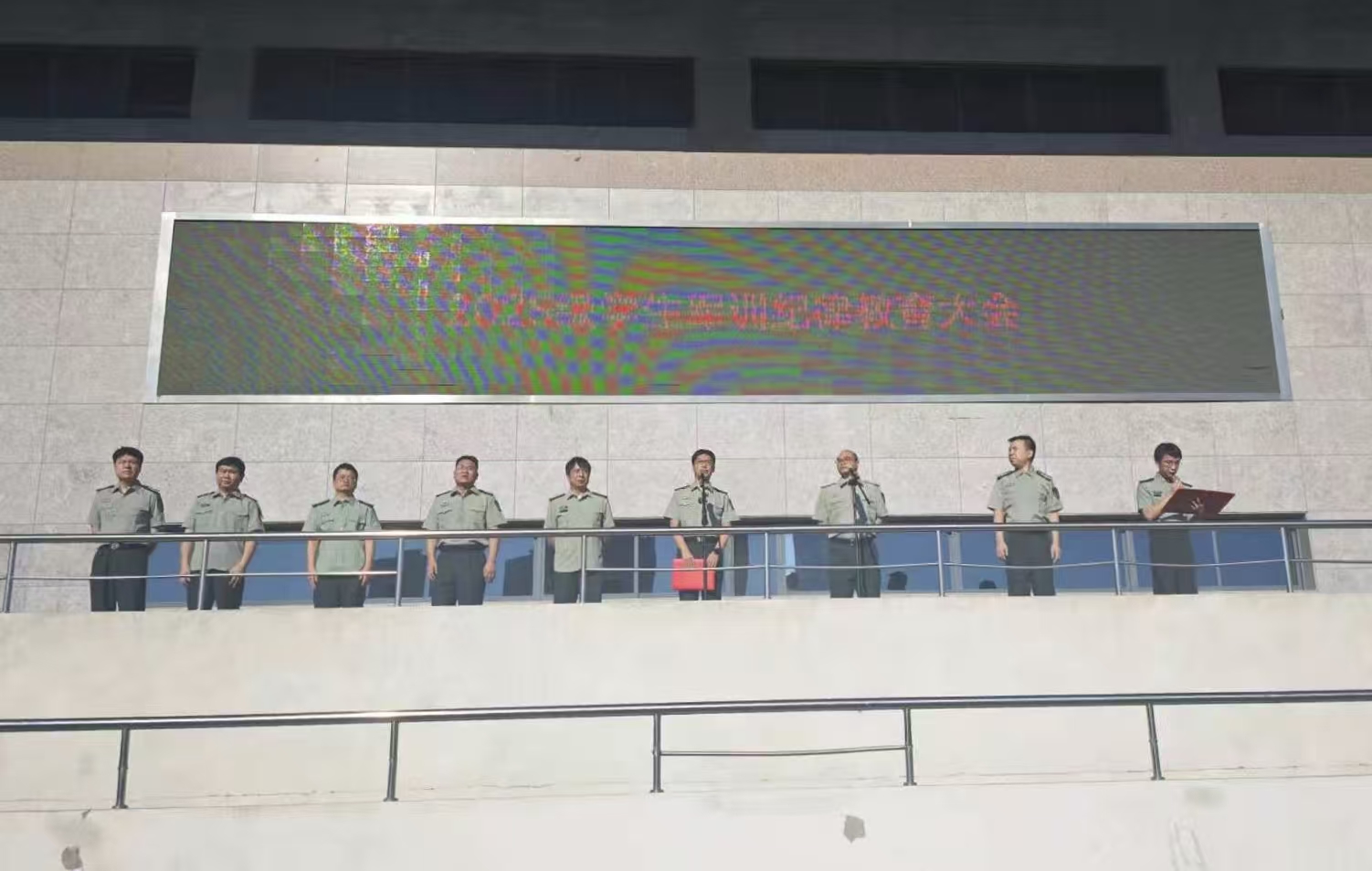 学生工作部(人民武装部)副部长刘俊、孙鑫分别向全体新生作参训纪律要求:要严于律己、认真训练,尊重教官,顽强拼搏。用钢铁般的意志迎接挑战,用烈火般的热情投身训练,圆满完成本次军训任务,为未来的大学学习生活奠定坚实的基础。
