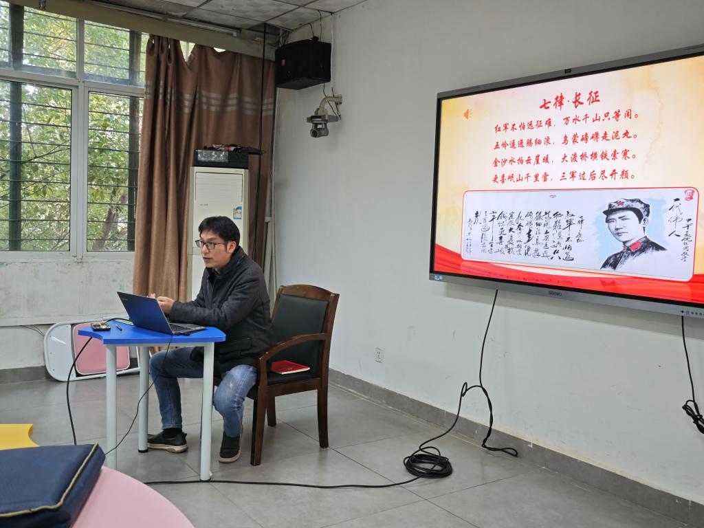 11月28日下午,学工党总支书记袁轩宇为全体党员讲授长征精神专题党课。